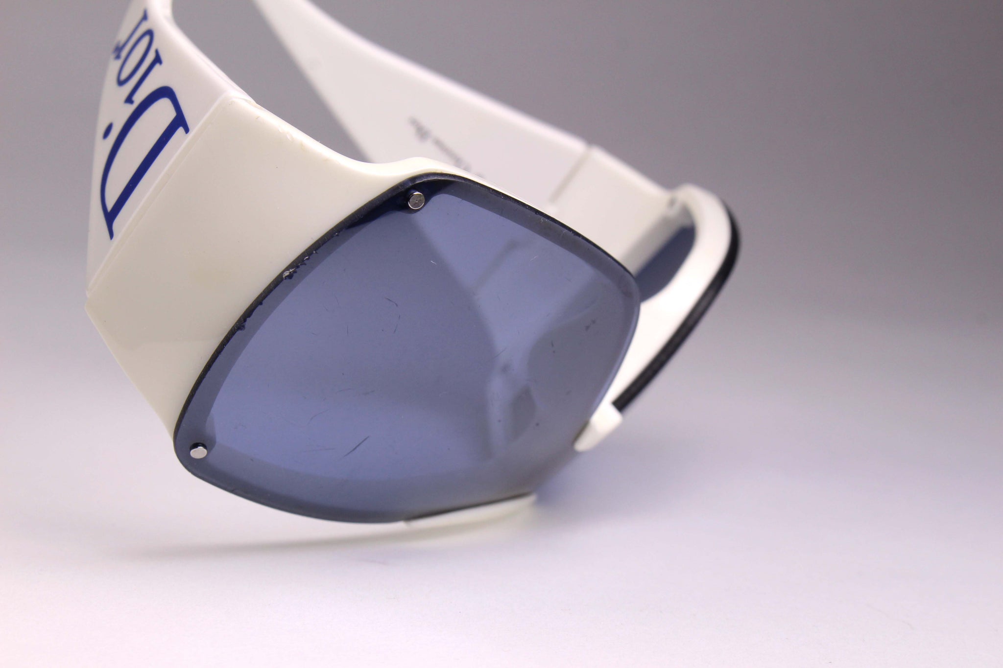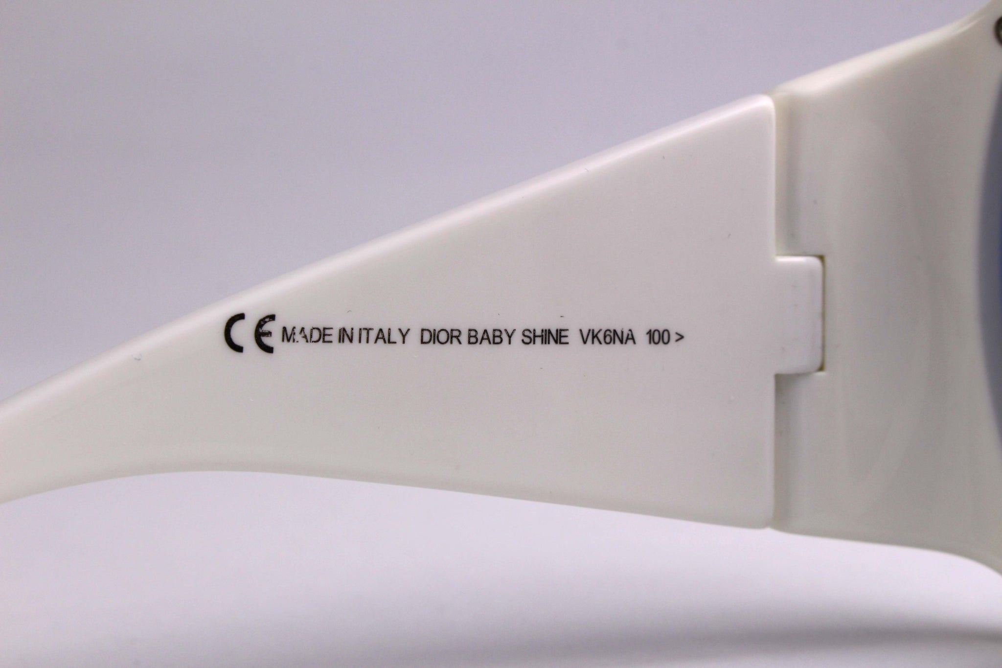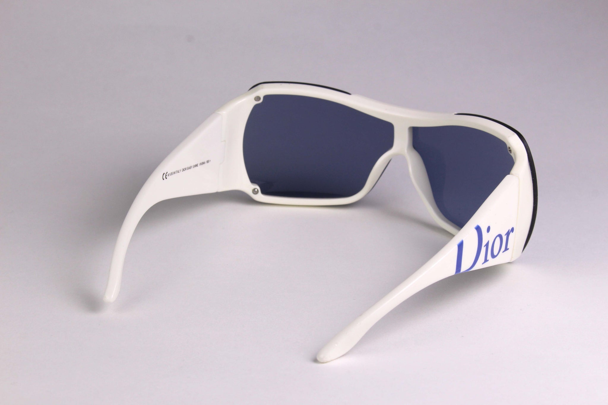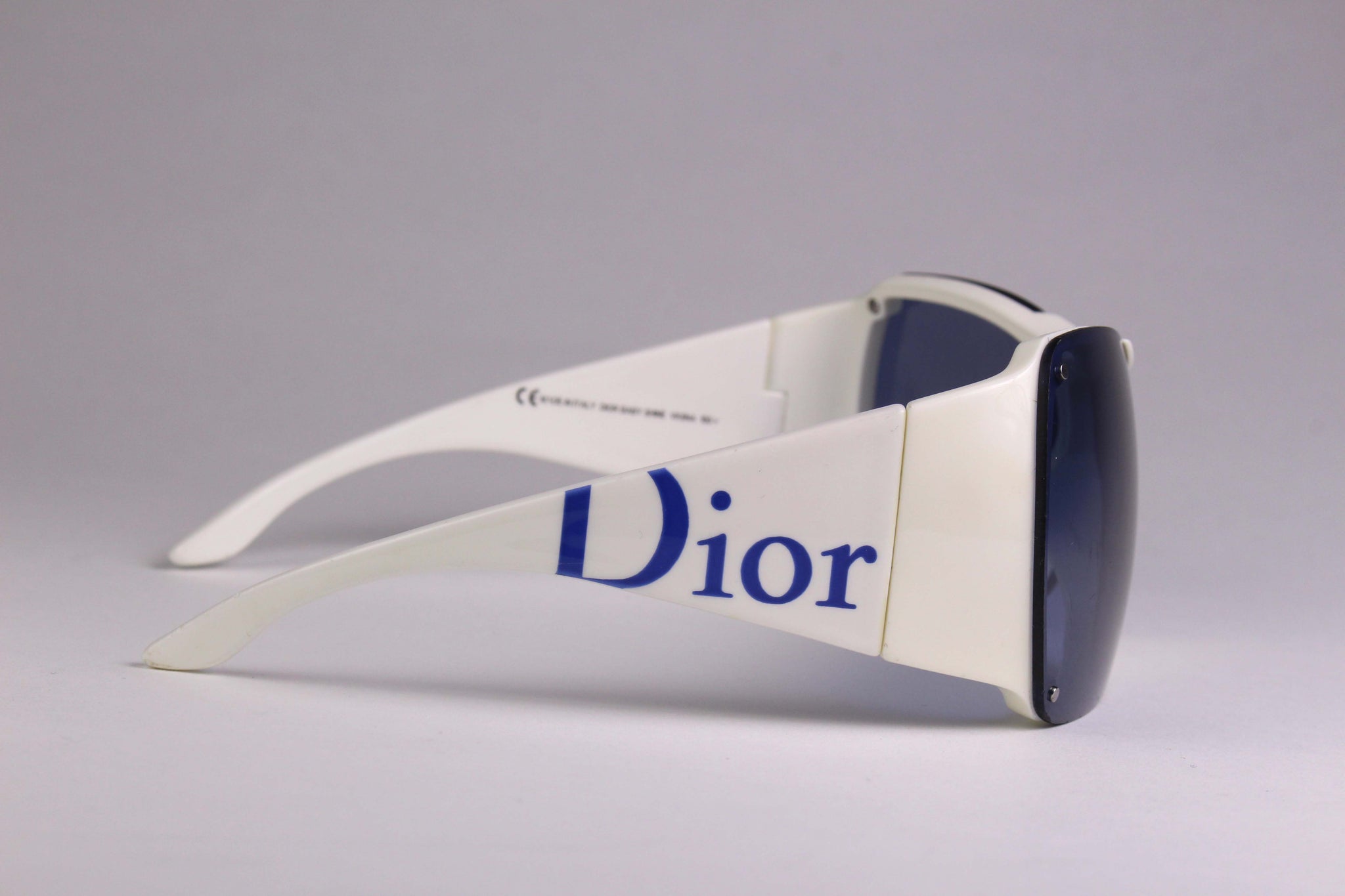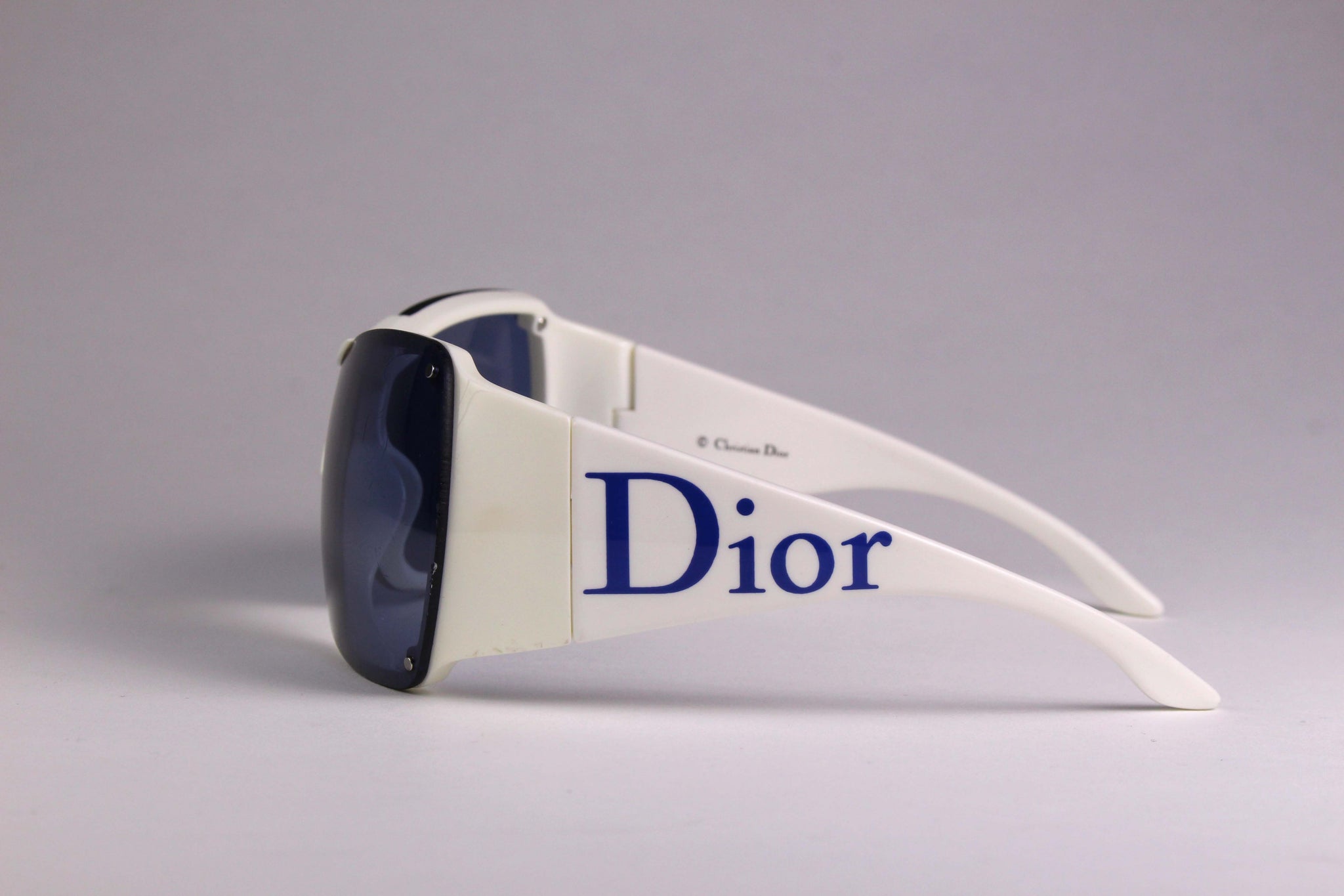 FOR CHILDREN, 2000's sunglasses CHRISTIAN DIOR, made in Italy, model DIOR BABY SHINE. White frame, blue Dior lettering, blue lenses. Very rare in this color. Frame with personality with high quality materials. Good condition, with numerous scratches on the lenses and chipping on the left side of the lens, see images. Delivered with original Christian Dior case and box.