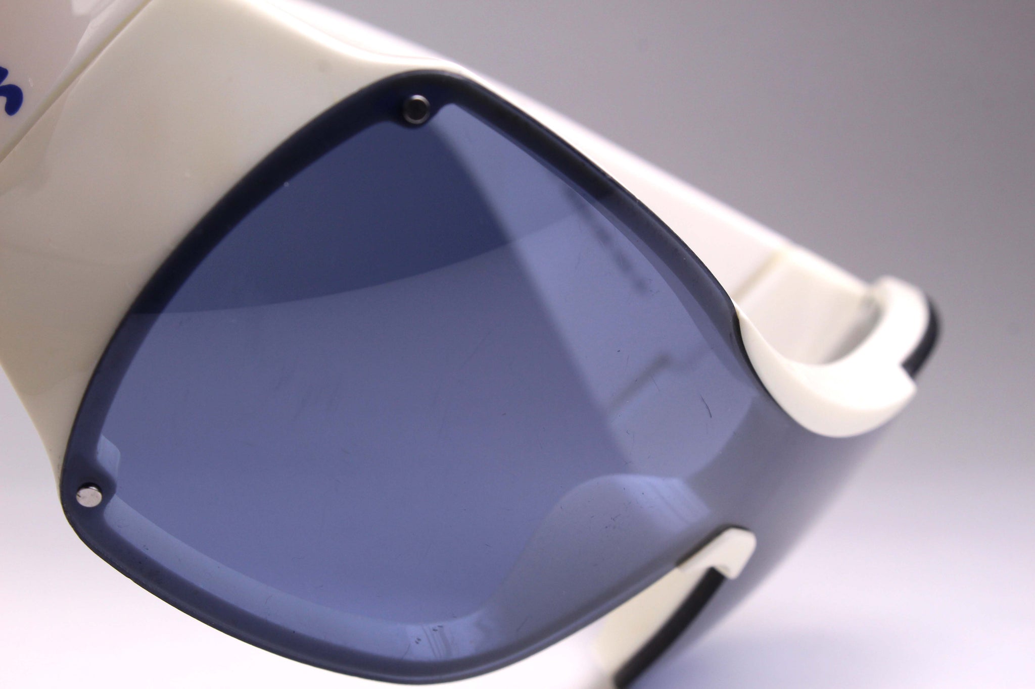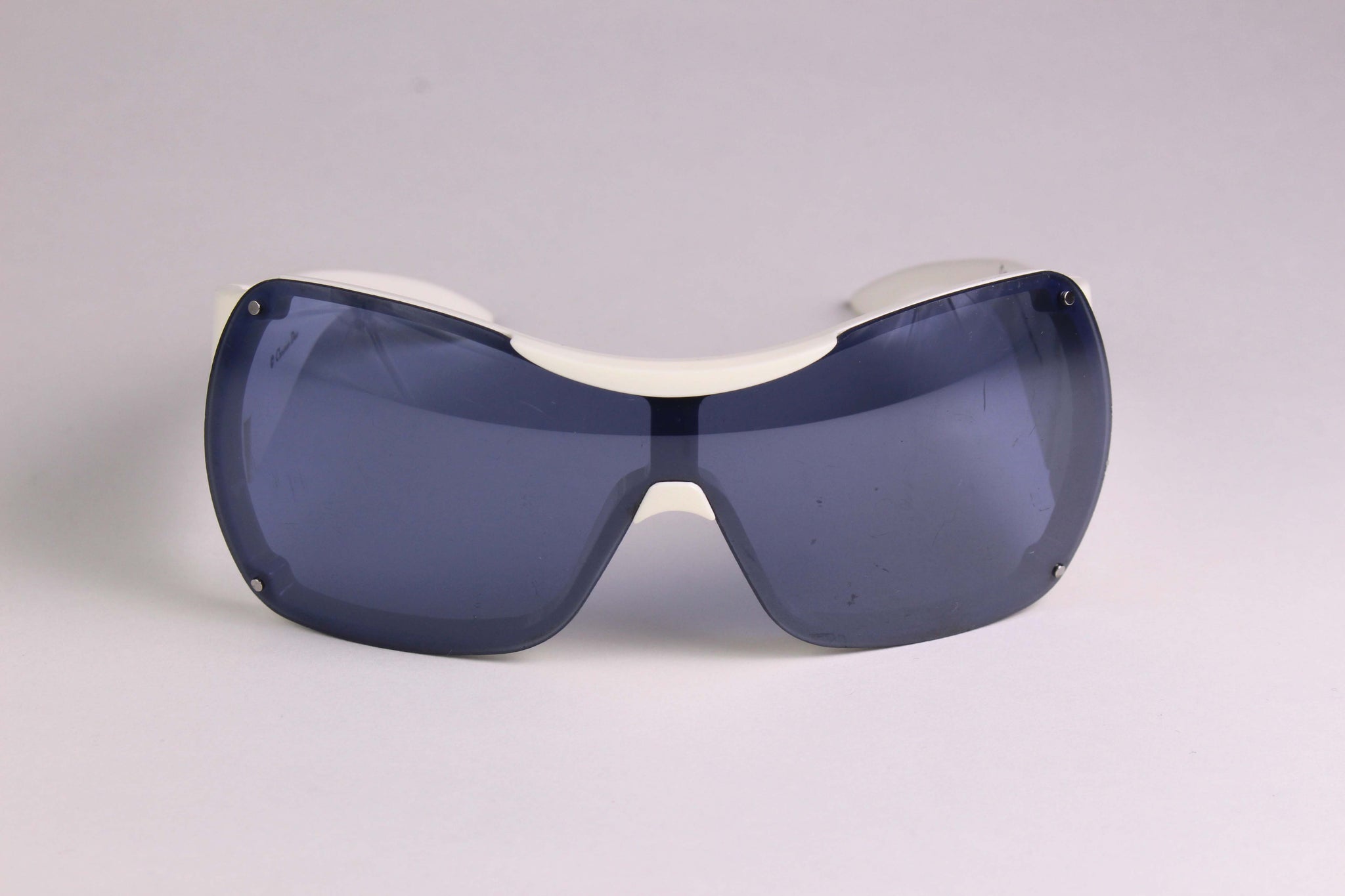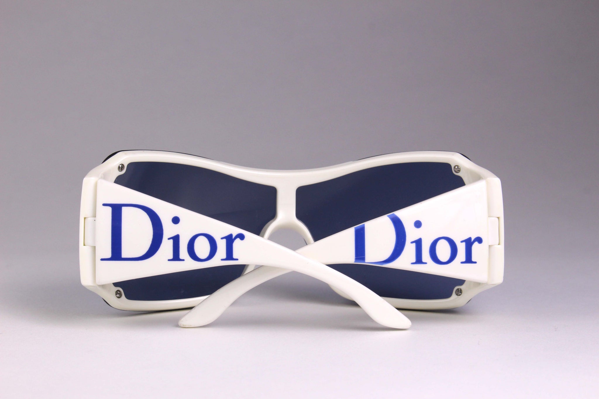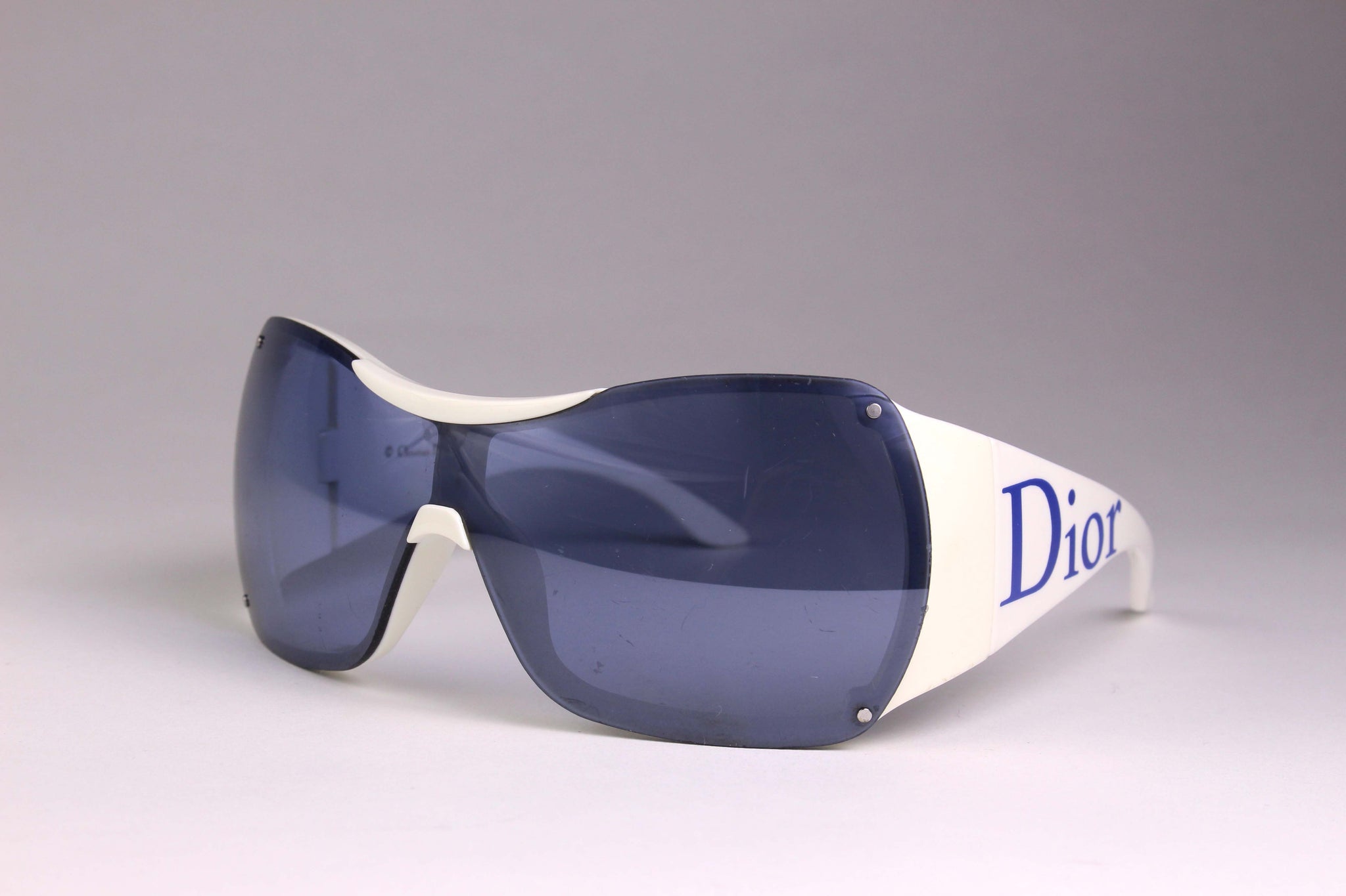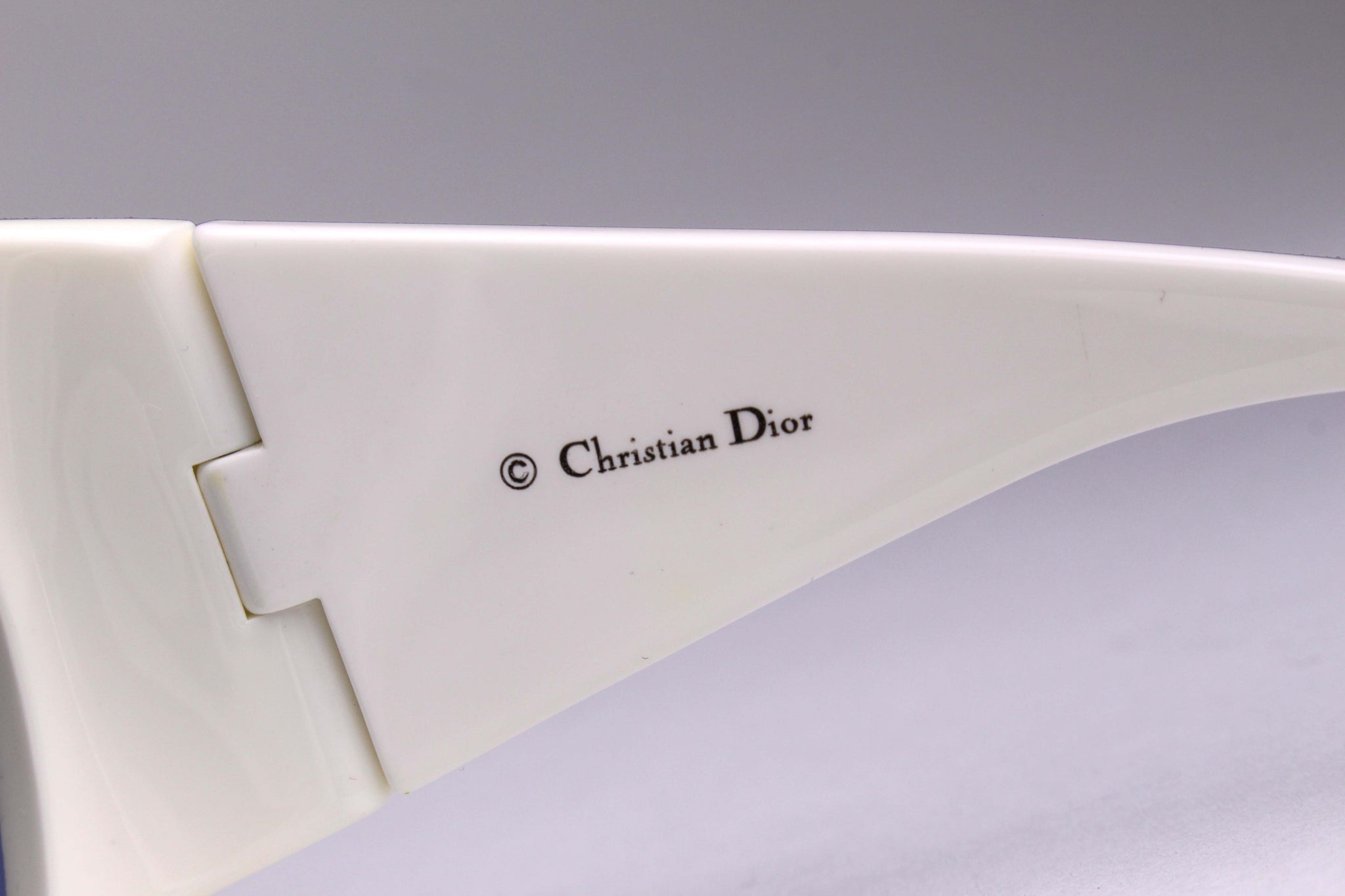 FOR CHILDREN, 2000's sunglasses CHRISTIAN DIOR, made in Italy, model DIOR BABY SHINE. White frame, blue Dior lettering, blue lenses. Very rare in this color. Frame with personality with high quality materials. Good condition, with numerous scratches on the lenses and chipping on the left side of the lens, see images. Delivered with original Christian Dior case and box.