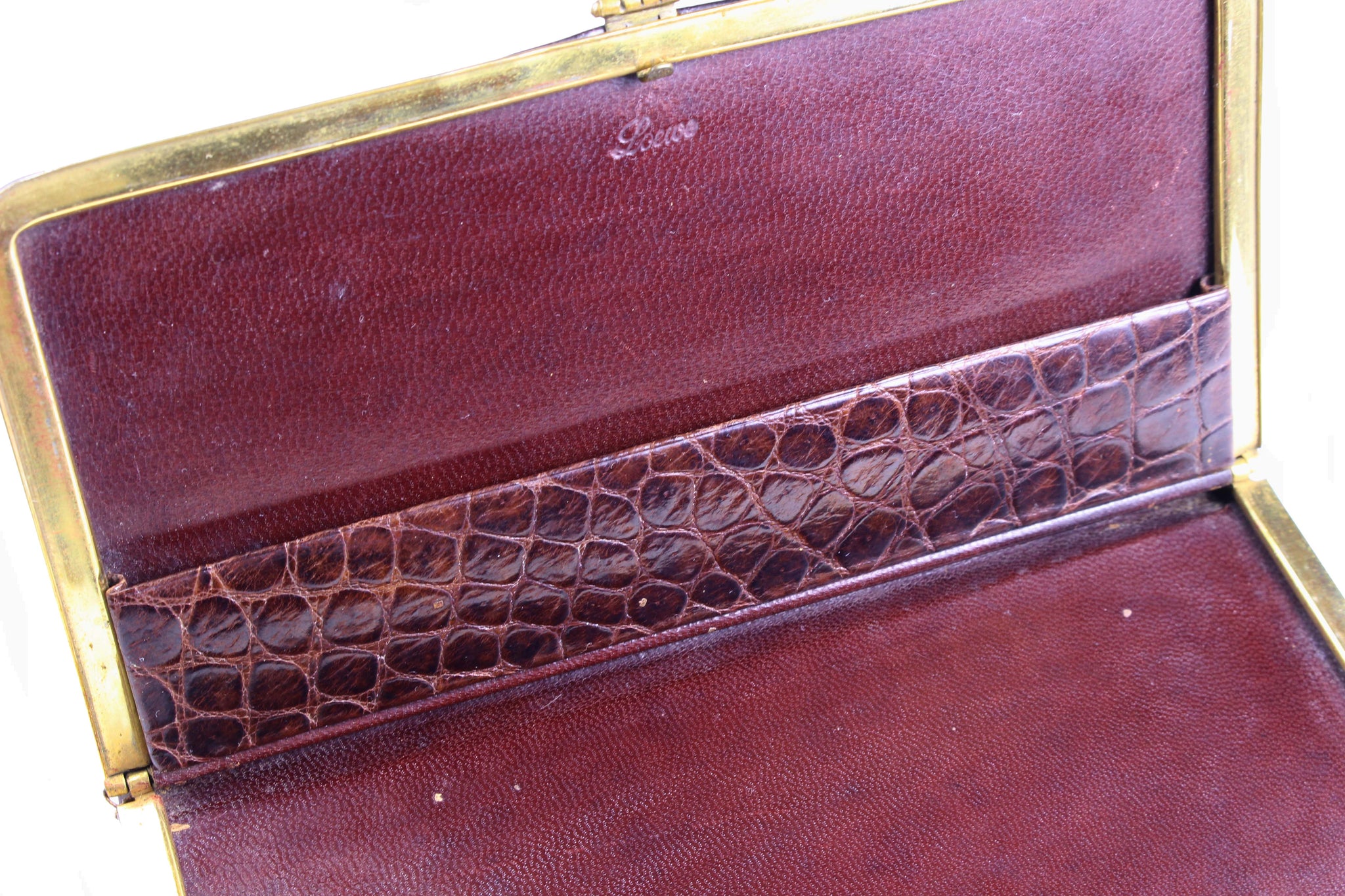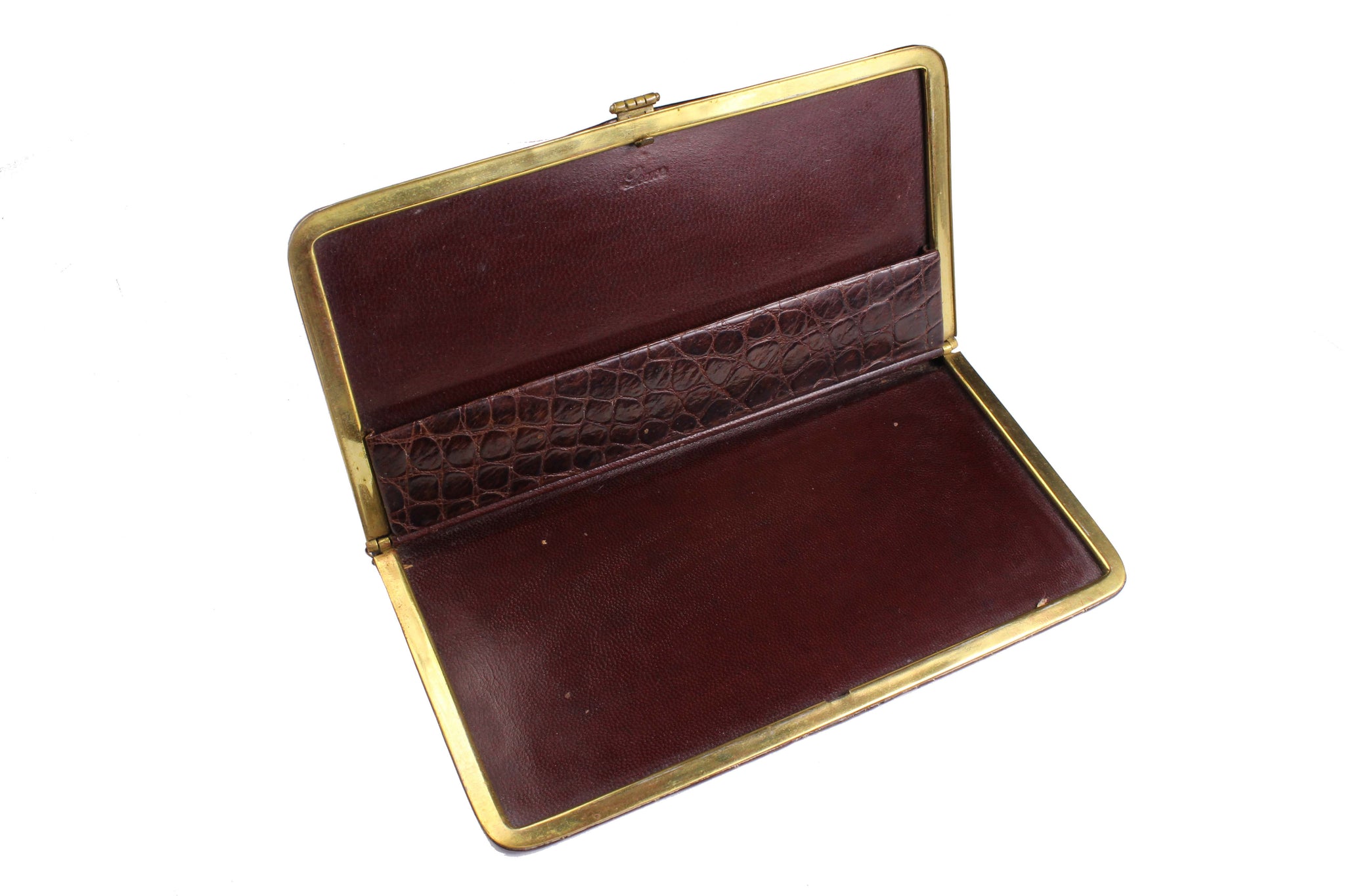Vintage LOEWE cigar/cigarette case, in brown genuine crocodile skin. The interior lining in genuine brown leather.