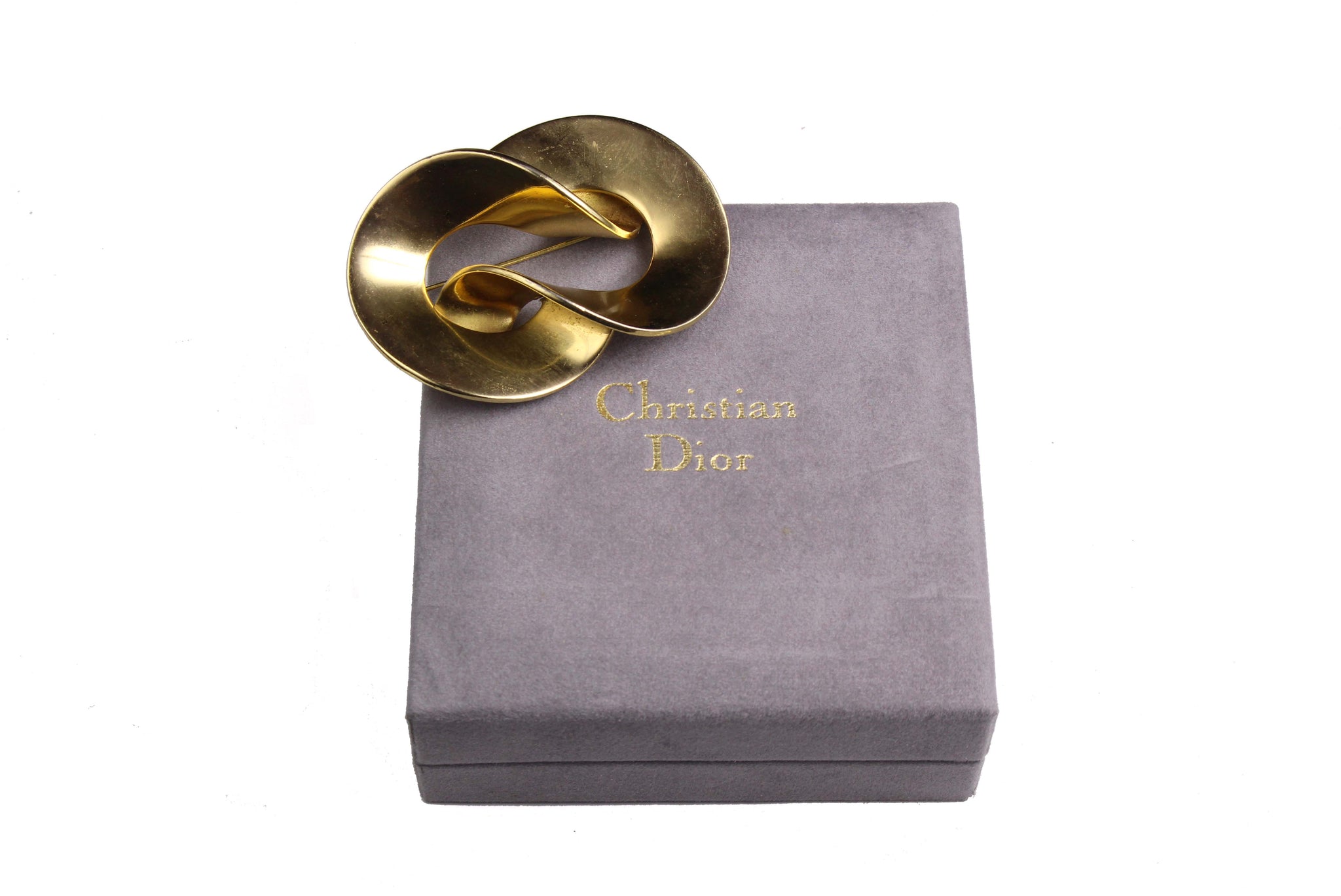 CHRISTIAN DIOR, Germany, vintage 70's gold plated knot brooch. Signed and copyright on the back. Excellent condition, with very slight scratches and some tiny rust spots on the needle. Delivered in original Christian Dior box.