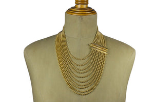 Vintage YVES SAINT LAURENT, made in France, vintage multi-strand, chain of small gold metal ball beads necklace. Pin locking mechanism. Signed.